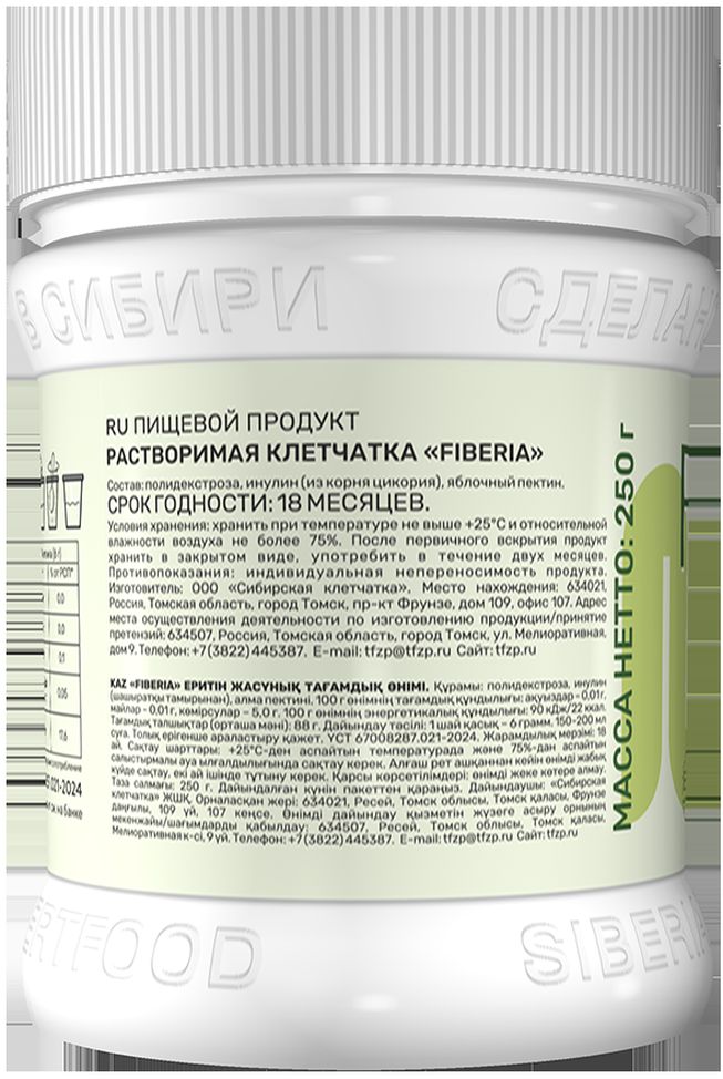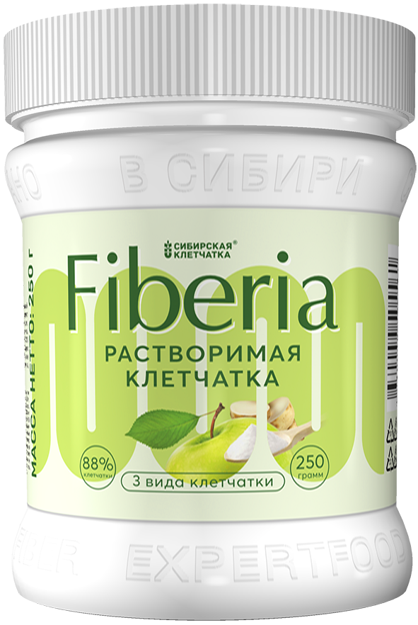 «Fiberia» содержит три вида растворимой клетчатки, благодаря которым продукт имеет широкий спектр полезного действия.
